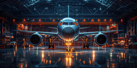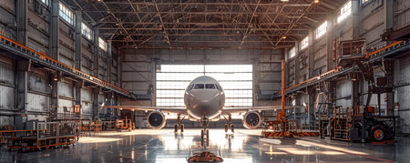 Commercial Airplane in Maintenance Hangar