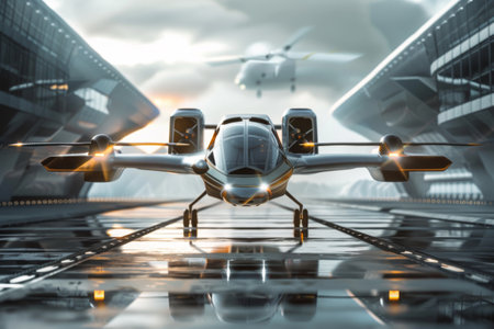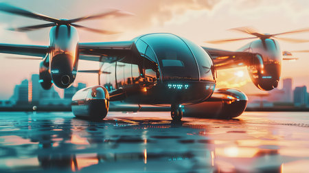 A vertical take-off and landing aircraft providing quick and convenient transportation. --ar 3:2 Job ID: 86670019-e33b-42b2-8a50-cbc6ff7c494f