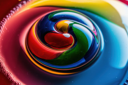 This striking abstract image features a colorful ripple with a droplet resting on a vibrant surface. It captures the beauty of fluid motion and creative inspiration.