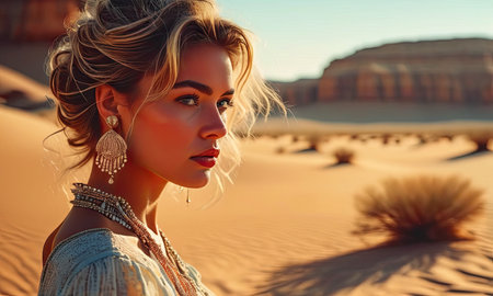Portrait of a beautiful middle-aged woman in the desert.