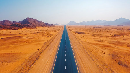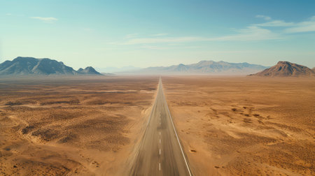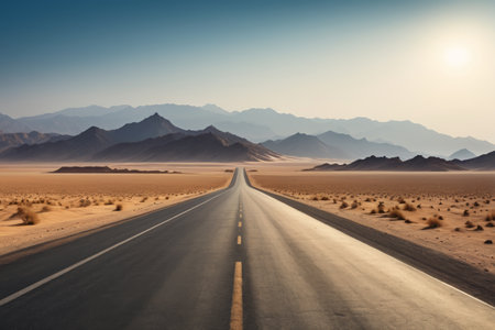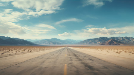 Minimalistic empty highway in desert. Travel concept. Generative AI.