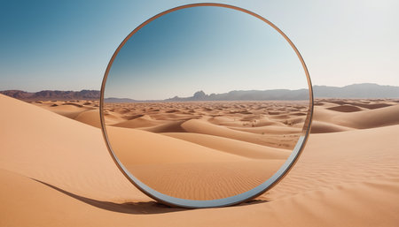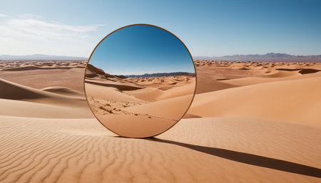 Large round mirror in desert