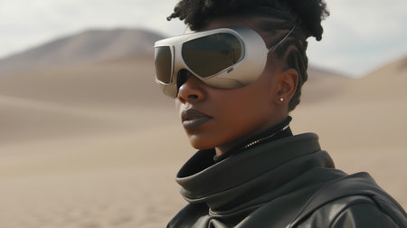Portrait of african american woman with sunglasses in the desert