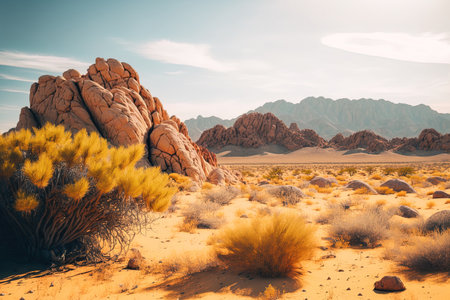 AI Generated. A solitary bush in the vast desert landscape