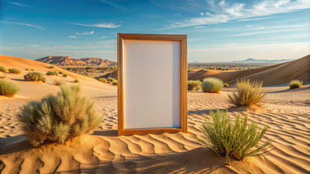 midday illustration of a frame in a desert landscape
