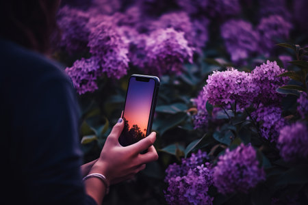Blooming Enchantment: A Captivating Shot of a Person Mesmerized by Their Black iPhone 5 Amidst Vibra