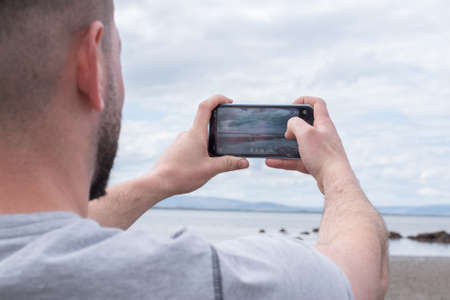 Man taking photo with mobile phone on the beach