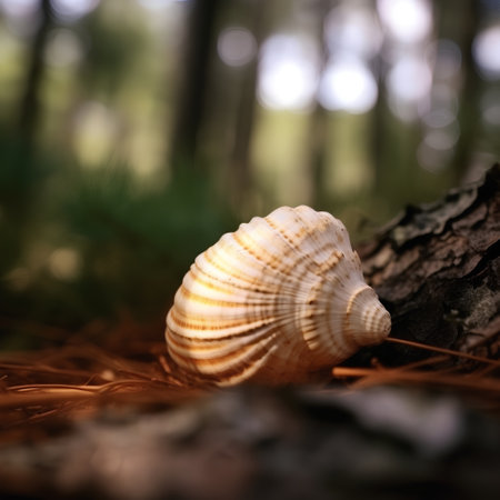 A single seashell is nestled on a soft sandy beach, surrounded by a tranquil and sunny atmosphere perfect for relaxation.