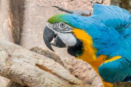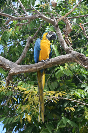 the yellow and blue Macaw parrot in the nature in Cartagena, Colombia