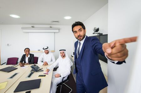 Group of Arabic business people in a meeting at office.
