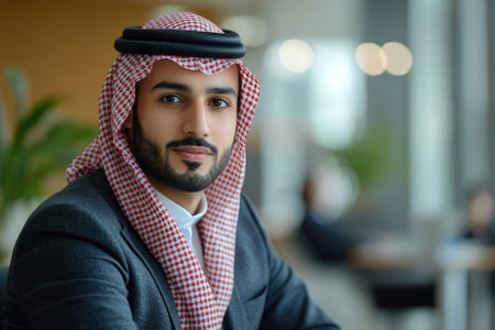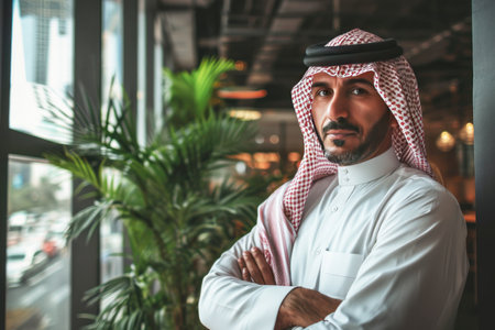 Successful businessman wearing keffiyeh and suit representing modern Arab business world