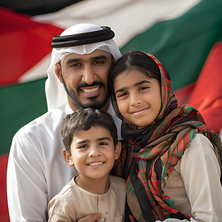 Happy family with united arab emirates flag in the background