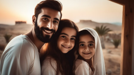 Portrait of a happy family in the city of Petra, Jordan