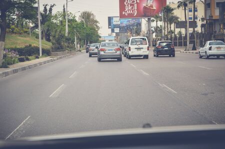 cairo, egypt, may 6, 2017: view of highway traffic at cairo ismaileya desert road