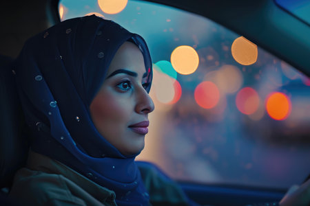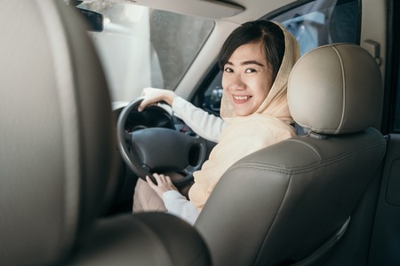 muslim woman with hijab driving a car