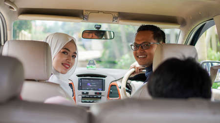Muslim family travel by car during eid mubarak celebration