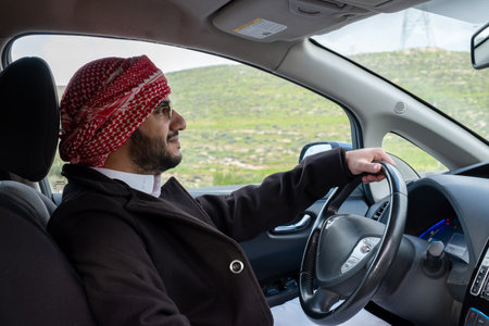 Cheerful arabic driver in his car