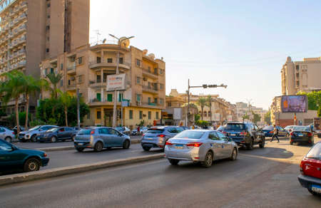 Cairo - Egypt - October 4, 2020: View of Cairo old historical residential district with main street and mix of british-style architecture, Eastern Downtown, Misr Al Gadida - Al Montaza
