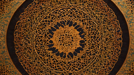 Abstract Islamic background featuring intricate calligraphy and geometric symmetry.