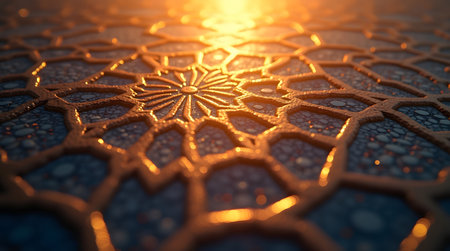 Intricate golden Islamic pattern glows, a mesmerizing background for Ramadan or Eid celebrations