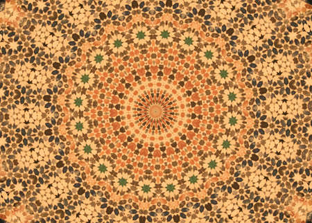 Texture arabic flower pattern on the stone wall. Texture on the concrete surface is orange. Background in arab style, close-up.