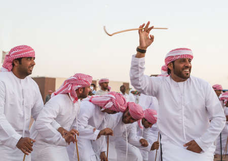 Traditional Emirati male dance Al Ayalah at Al Hosn festival. Emirates. high quality photo