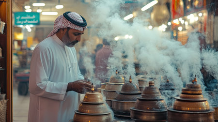 Experience the vibrant atmosphere of a traditional market, where a vendor skillfully tends to steaming dishes, showcasing local crafts and culture.