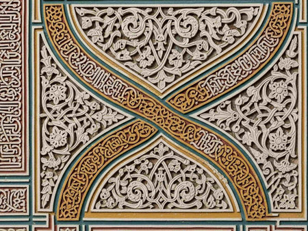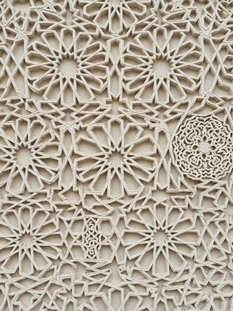 Close up shot of some Arabic decorations at the Alhambra palace in Granada, Spain.