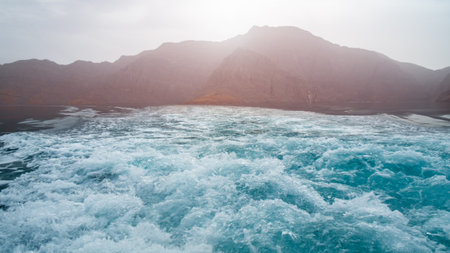 Sea tropical landscape with mountains and fjords, Oman