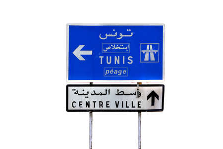 A road sign in tunisia with directions to Tunis