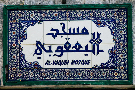 Jerusalem Israel July 3, 2019 View of street sign in the Old city of Jerusalem in the afternoon