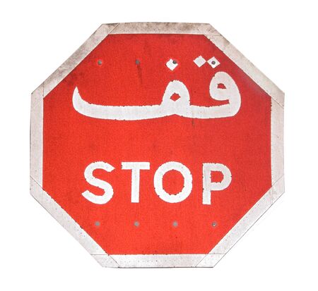 Arabic red and white traffic stop sign.