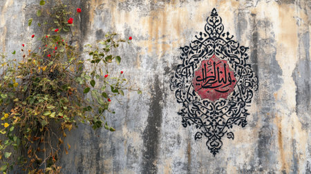 Intricate Arabic Calligraphy on Decorative Tiles in Earth Tones