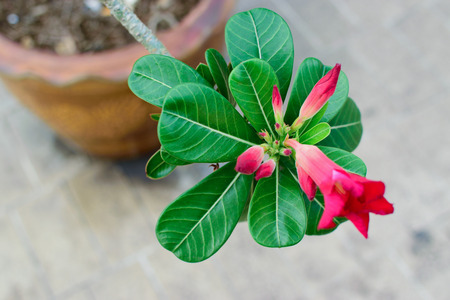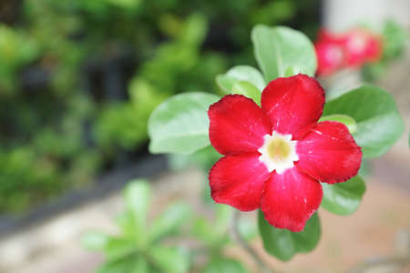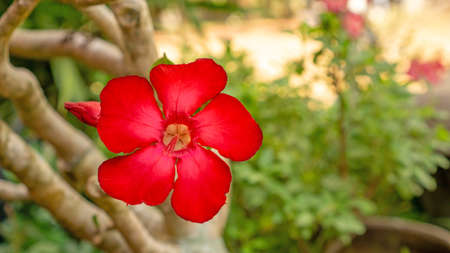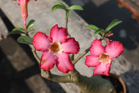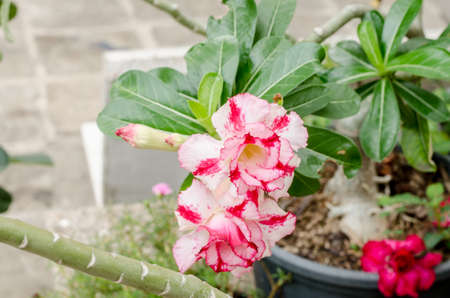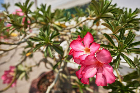 Adenium obesum flower or desert rose. Evergreen plant for gardening