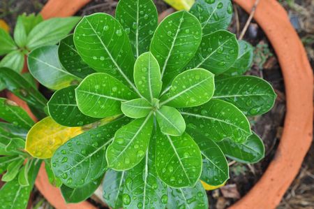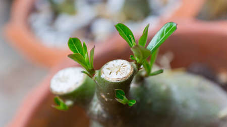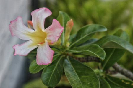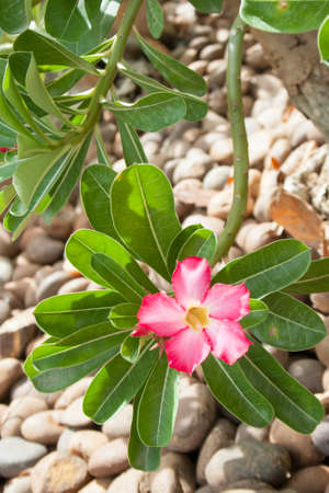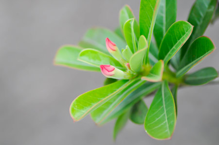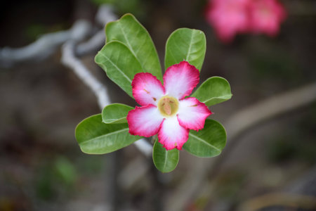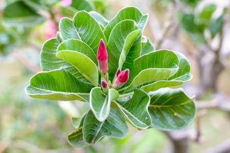 Green leaf desert rose flower (selective focus)