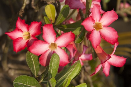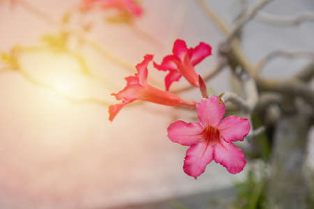 Beautiful Desert rose flower in the garden with morning sun shine. Also know as Mock azalea flowers, Impala lily flower, Adenium flower
