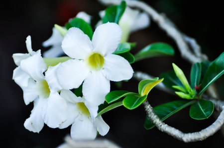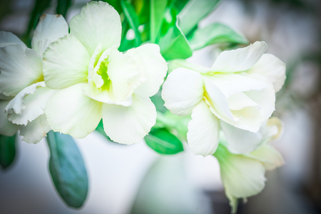 Close up of White Adenium Obesum Desert Rose or Impala Lily