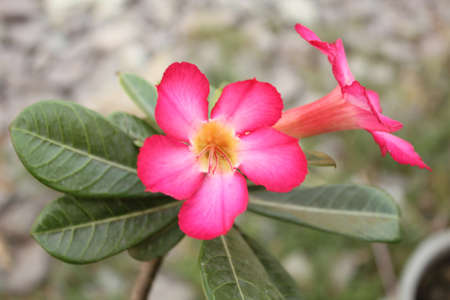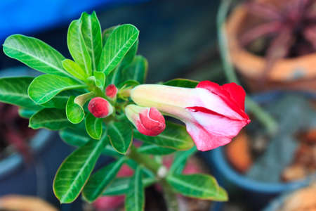 Beautiful Adenium flowers in a pot, nature background