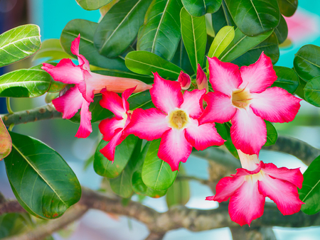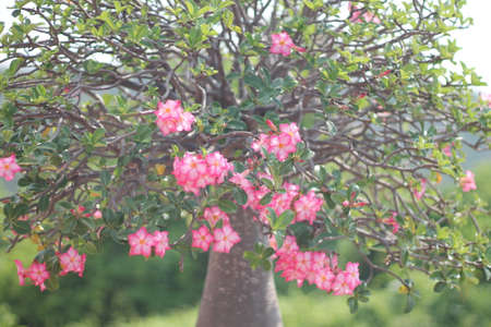 Desert Rose Tropical flower (Also called Impala Lily, Mock Azalea, Pink adenium) on a tree or Impala Lily beautiful Pink adenium in the garden