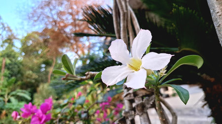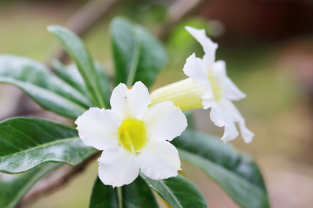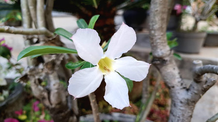 Adenium obesum , Desert rose or Mock Azalea or bignonia or Impala lily or APOCYNACEAE or white Adenium in the garden