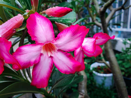 Flower (Adenium obesum, Impala Lily, Mock Azalea, Sabi Star, Kudu or Desert-rose) pink color, Naturally beautiful flowers in the garden