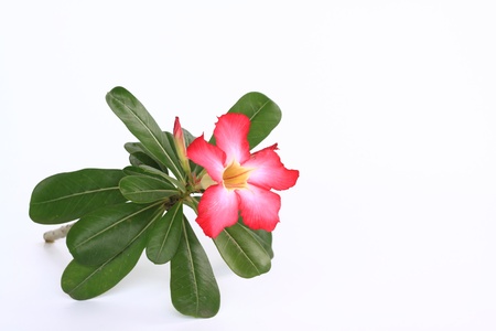 Close up of Adenium flower, also known as desert rose, with white background.