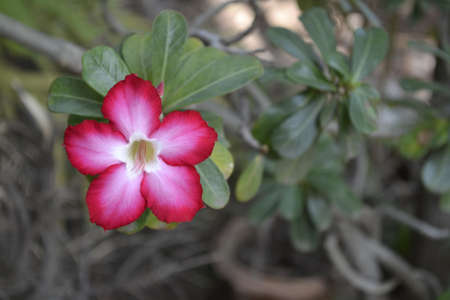 Adenium obesum , Desert rose or Mock Azalea or Pink bignonia or Impala lily or APOCYNACEAE or red and white flower or bicolor flower