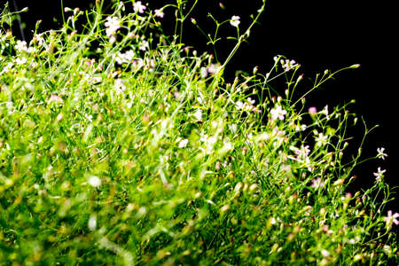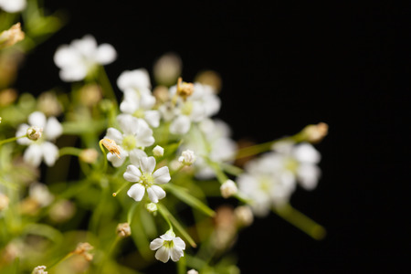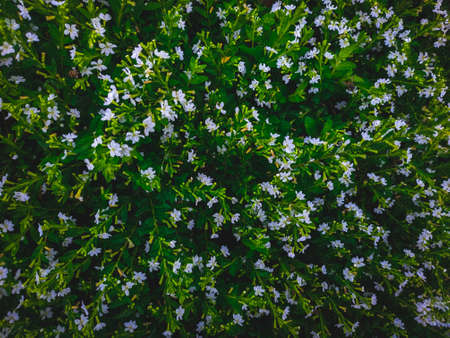 Close up little white flowers on green background. Macro from a beautiful, little, white flower.