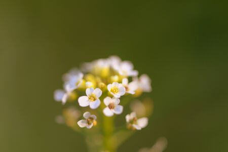 Close-up view of beautiful natural wildflowers. Nature background pattern. Alyssum flowering plants