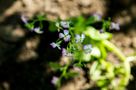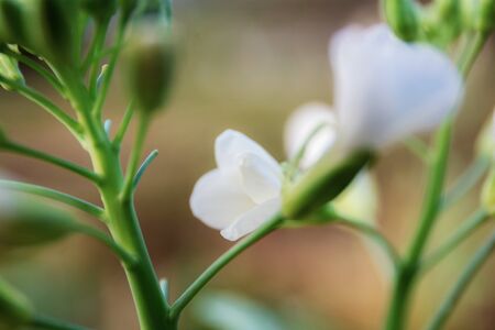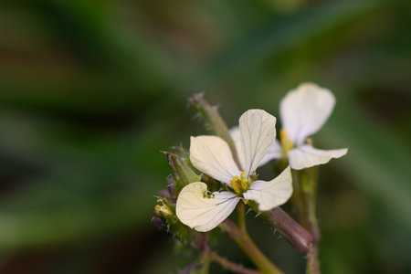 Close up of Raphanus flower. Beautiful Raphanus sativus flower in farm. Raphanus flowers. Radish flower. With Selective Focus on the subject.