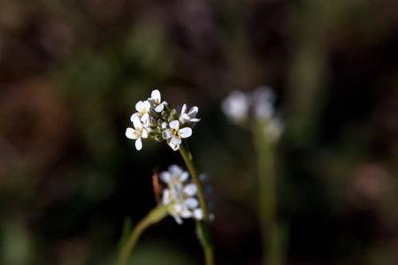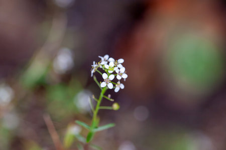 Capsella bursa-pastoris, known as shepherd's bag. Widespread and common weed in agricultural and garden crops. Medical plant in natural environment.
