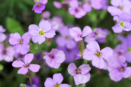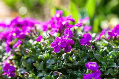 Close up of a purple flower Aubrieta Adans in the garden. macro shot.