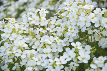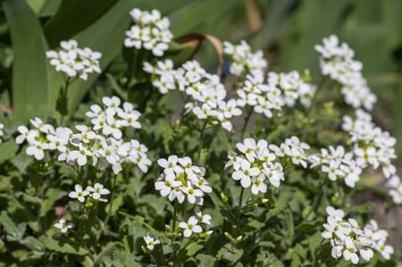 Garden Arabis white flowers - Latin name - Arabis caucasica