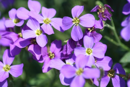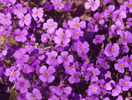 Purple flowers of lilacbush aubrieta close-up